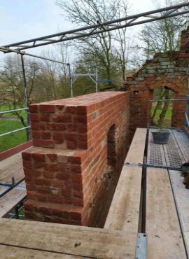 In Abstimmung mit dem Restaurator und dem Architekten sowie im Beisein der Denkmalbehörde des Landkreises war nach der Reinigung und Freilegung des intakten Mauerwerkes die Strategie zum maximalen Erhalt von Originalsubstanz zu besprechen. Gemeinsam wurden Lösungen zur Risssanierung im Bestand, zur Wiederverwendung von Altmaterial nach notwendigem Rückbau und zum Einsatz von Neumaterial im Interesse der Erhaltung eines möglichst ursprünglichen Bildes der Ruine erarbeitet.